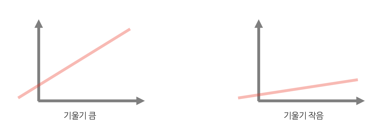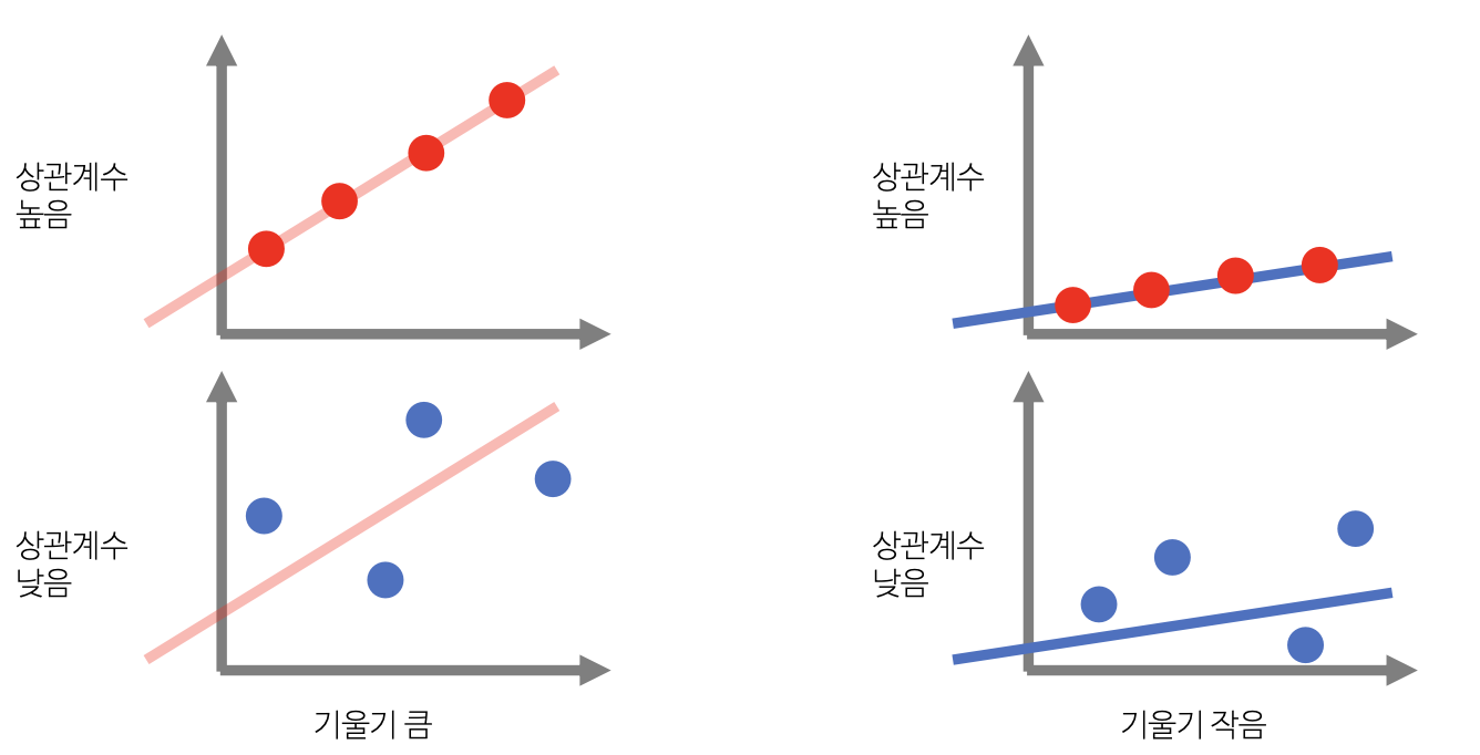 - 기울기가 클 수록 y 가 크게 변함 - 상관계수와 다른 개념이므로 주의