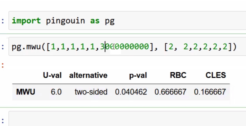 맨-휘트니 U 검정: 두 집단의 순서형 변수를 비교 a, b 집단 비슷할 때 순서 a, b, a, b 이렇게 서고 집단이 안 비슷하면 a,a,a b,b,b 이렇게 되면 귀무가설 기각(밑 이미지 참고) 줄을 섰는데 튀는 데이터가 있어도 순서대로 서기만 하면 되니까 큰 문제가 되지 않음, 극단치 있어도 쓸 수는 있다