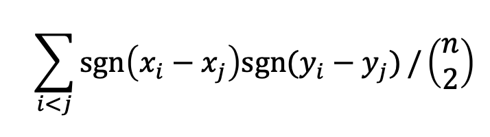 - 모든 사례를 짝지어 X의 대소관계와 Y의 대소관계가 일치하는지 확인