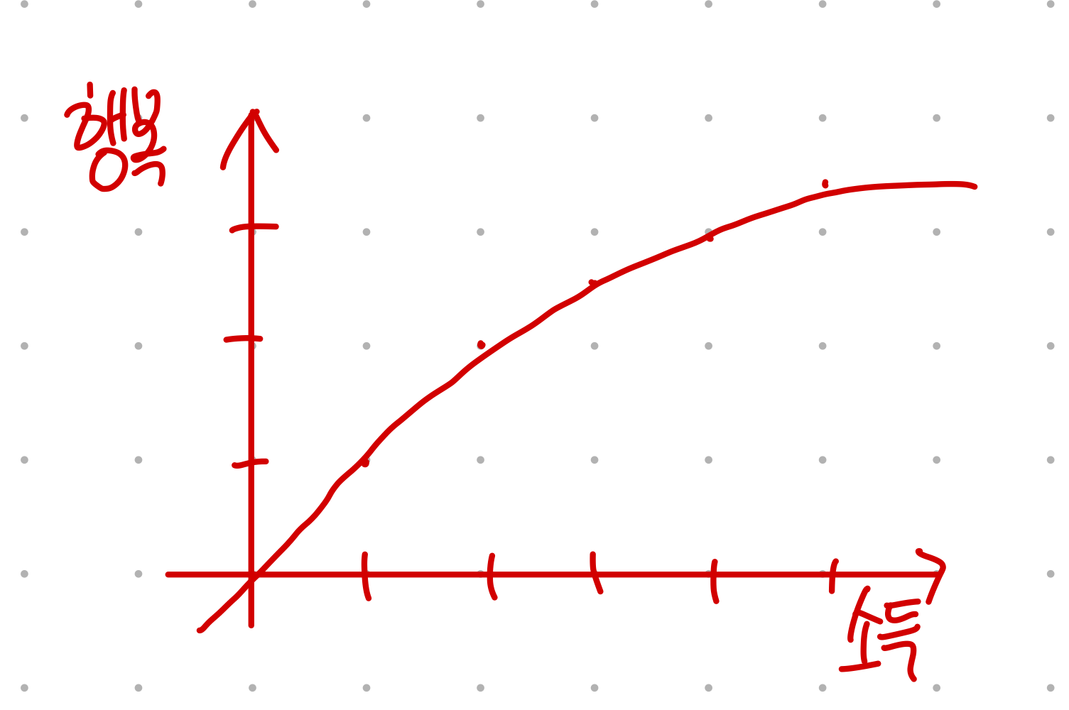 - 행복과 소득의 상관관계 -> 연관 있음 근데 소득이 어느정도 올라가면 그 행복도가 덜 함