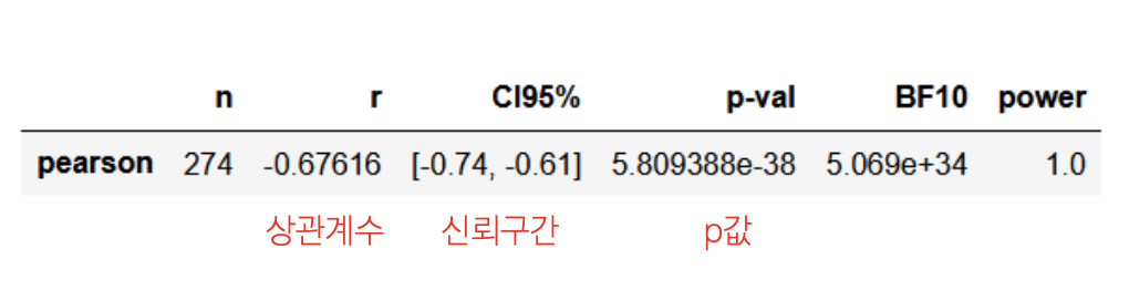 - 회귀분석의 R제곱 = 독립변수와 종속변수의 피어슨 상관계수의 제곱