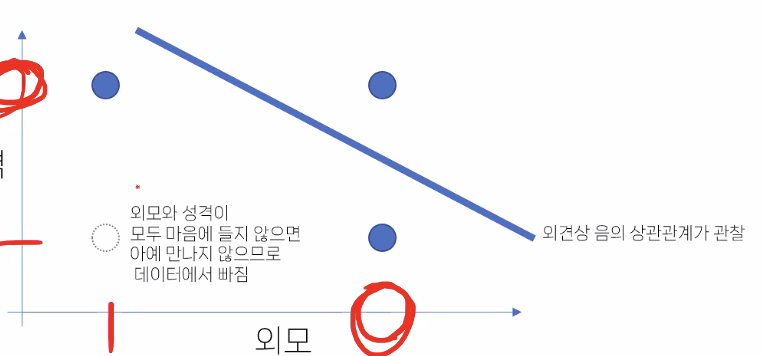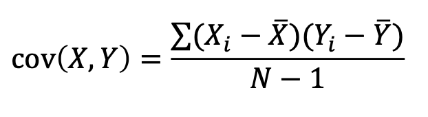 - x의 편차와 y의 편차 곱한 것은 평균(x=y이면 분산과 같음)