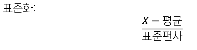 - 표준화를 하면 평균 = 0, 표준편차 = 1이 됨