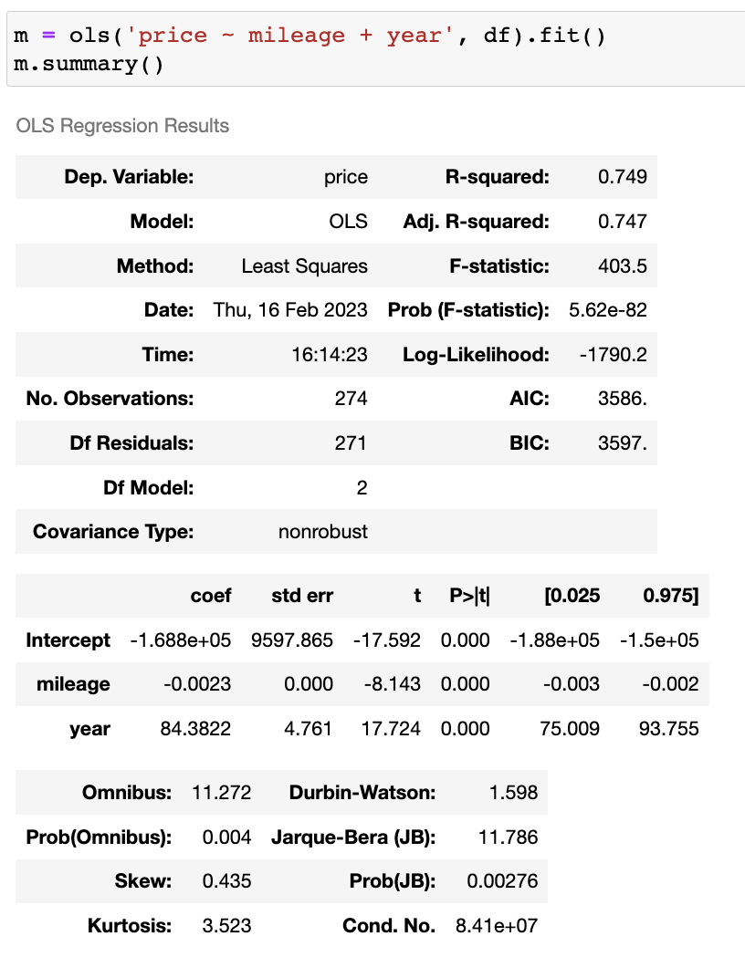 - 귀무가설: 모집단에서 회귀계수 = 0
