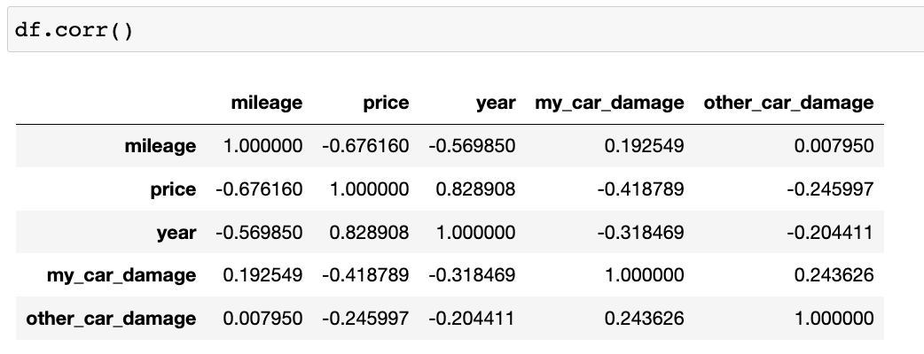 pg.corr(df.mileage, df.price, method='kendall') # 켄달 상관계수: -0.50