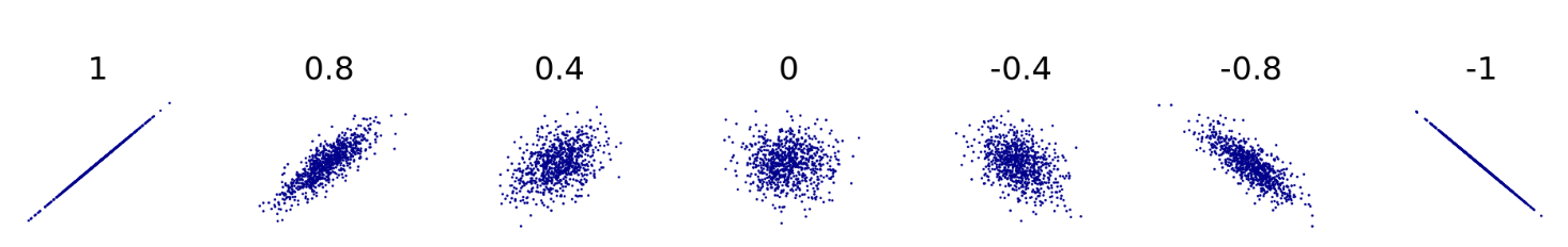 - 두 변수의 연관성을 -1~+1 범위의 수치로 나타낸 것