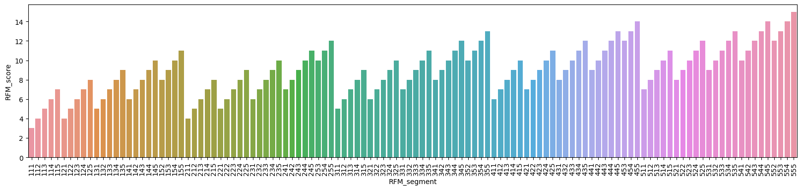 sns.barplot(data = rfm.sort_values('RFM_segment'), x = 'RFM_segment', y = 'RFM_score')