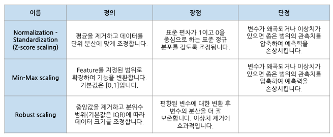 - 회귀, KNN, K-means 등의 거리기반 알고리즘에 사용하면 좀 더 나은 성능을 보인다