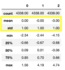 # rfm_cluster_log값을 Standard-Scaler를 통해 스케일링한 값인 X를 fit해줍니다.
