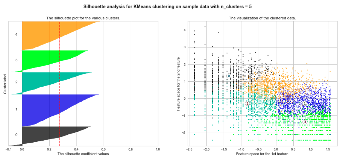 - 실루엣 분석은 결과 클러스터 간의 분리 거리를 연구하는 데 사용할 수 있음