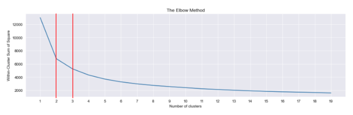 -> Within-Cluster Sum of Square: 클러스터 내 제곱 합계는 각 클러스터 내 관측값의 변동성을 측정하는 척도입니다. 일반적으로 제곱합이 작은 클러스터는 제곱합이 큰 클러스터보다 더 콤팩트합니다. = 클러스터 안에 있는 점들을 다 제곱을 해서 더했는데 거리가 가까울 수록 군집화가 잘 되었다는 의미