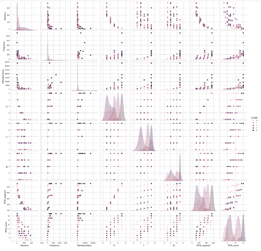 rfm['Cluster'] = kmeans.labels_