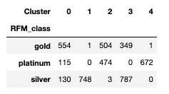 pd.crosstab(rfm['RFM_class'], rfm['Cluster'])