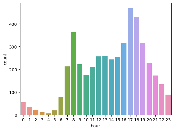sns.barplot(data=train, x="hour", y="count", errorbar=None)