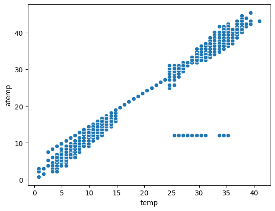 sns.scatterplot(data=train, x="temp", y="atemp")