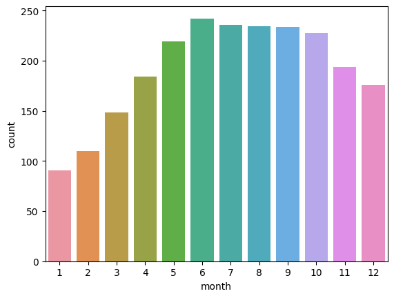 sns.barplot(data=train, x="month", y="count", errorbar=None)