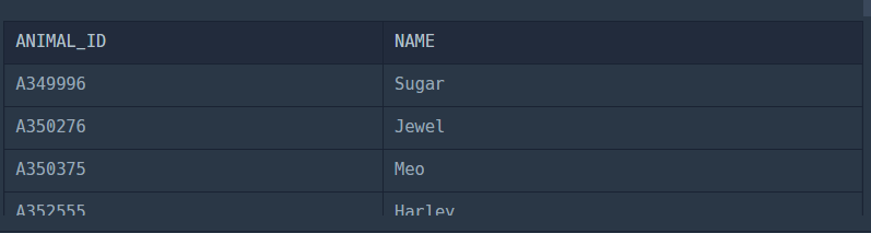 SELECT ANIMAL_ID, NAME