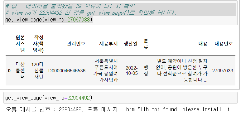 print(f"오류 게시물 번호 : {view_no}, 오류 메시지 : {e}")