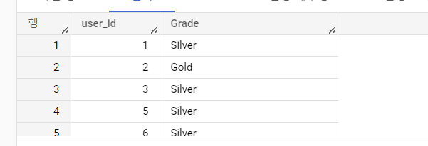 주문정보(orders) 테이블에서 주문을 3번 이상 구매한 사람의 등급을 ‘Gold’, 4번 이상 구매한 사람의 등급은 ‘VIP’, 그 외에는 'Silver'라고 등급을 지정해 줍니다.