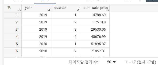 - quarter 오름차순