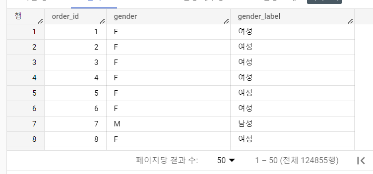 - gender가 F 이면 '여성'