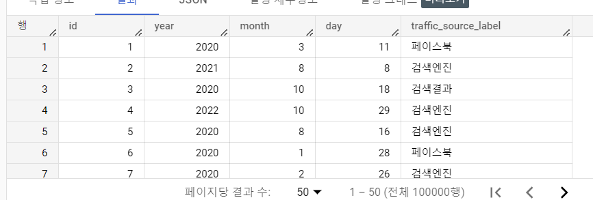 when traffic_source = 'Organic' then '검색결과'