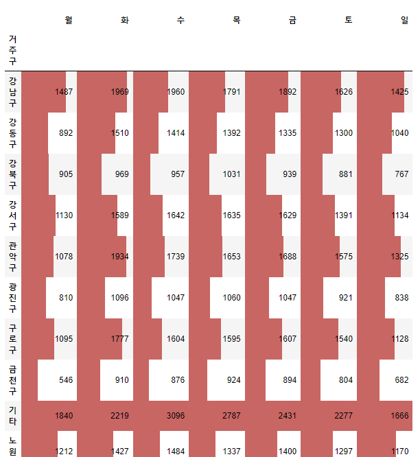 df_gu_weekday = pd.pivot_table(data = df, index= '거주구',