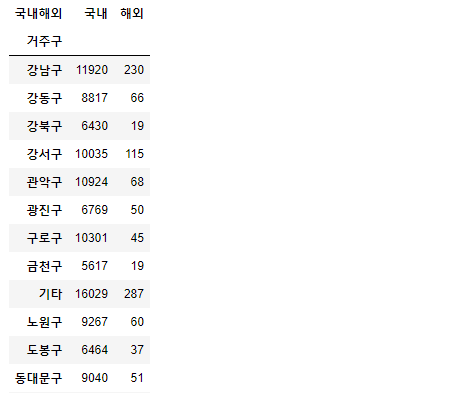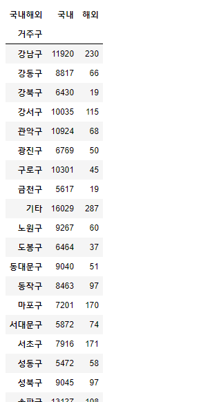 gu_oversea = pd.crosstab(df['거주구'], df['국내해외'])