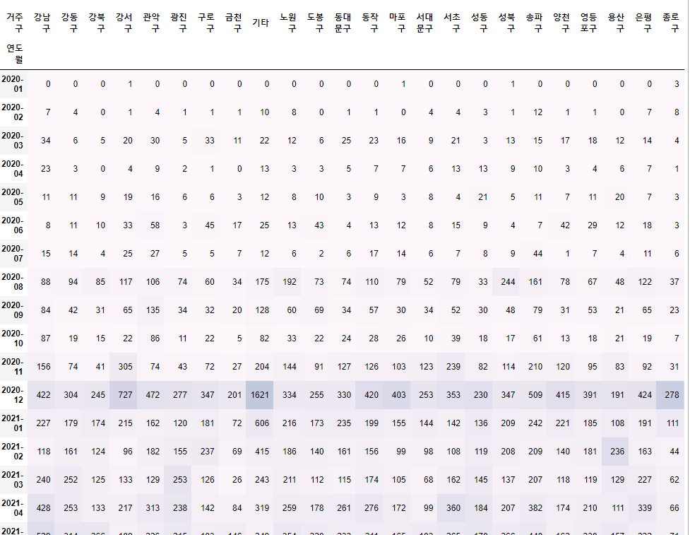 gu_ym = pd.crosstab(df['거주구'], df['연도월'])