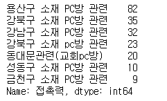 df.loc[df['거주구'].isin(['강남구', '서초구', '송파구']), '접촉력'].value_counts()