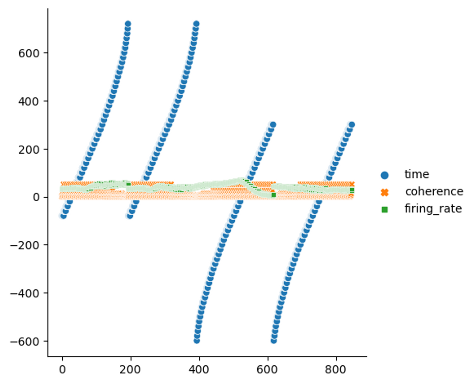 sns.relplot(data = dots, kind = 'line', x = 'time', y = 'firing_rate',