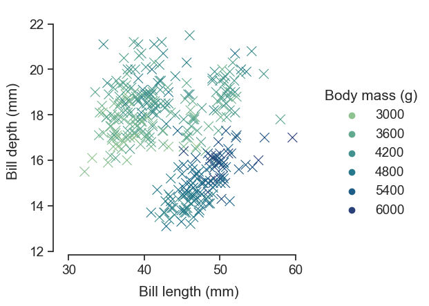 g.legend.set_title("Body mass (g)")