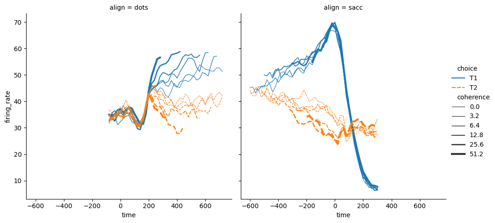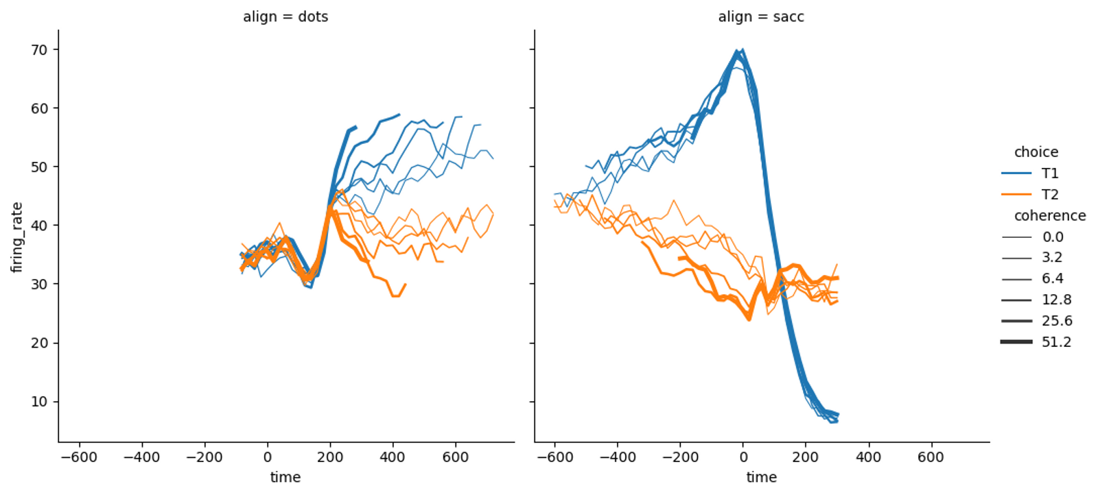 col = 'align', hue = 'choice', size = 'coherence',