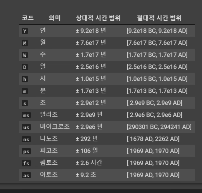 | int64 | 정수(9223:72086854775803 ~ 9223372036854775807 |