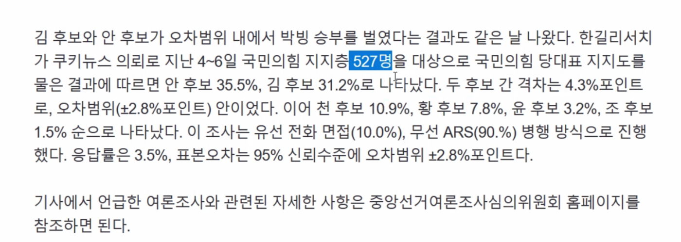 - 선거 때 출구조사(투표 후 나와서)