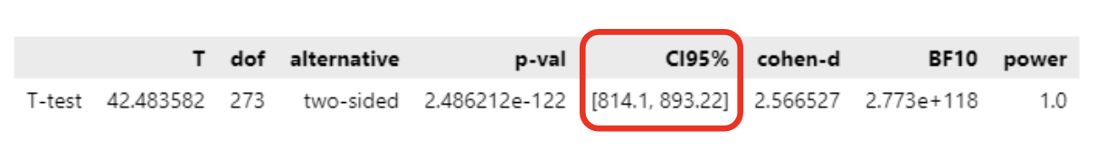 - 귀무가설 바꿔도 신뢰구간은 바뀌지 않음(전혀 상관 없는 데이터로 계산하는 것이기 때문에 -> 신뢰구간은 가설과 상관 없음 )
